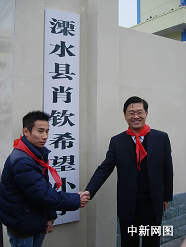 今天上午,南京市溧水县肖钦希望小学正式竣工。这是江苏省第一所奥运冠军援建的希望小学。共青团江苏省委副书记沈海斌与奥运冠军肖钦共同为溧水县肖钦希望小学揭牌。